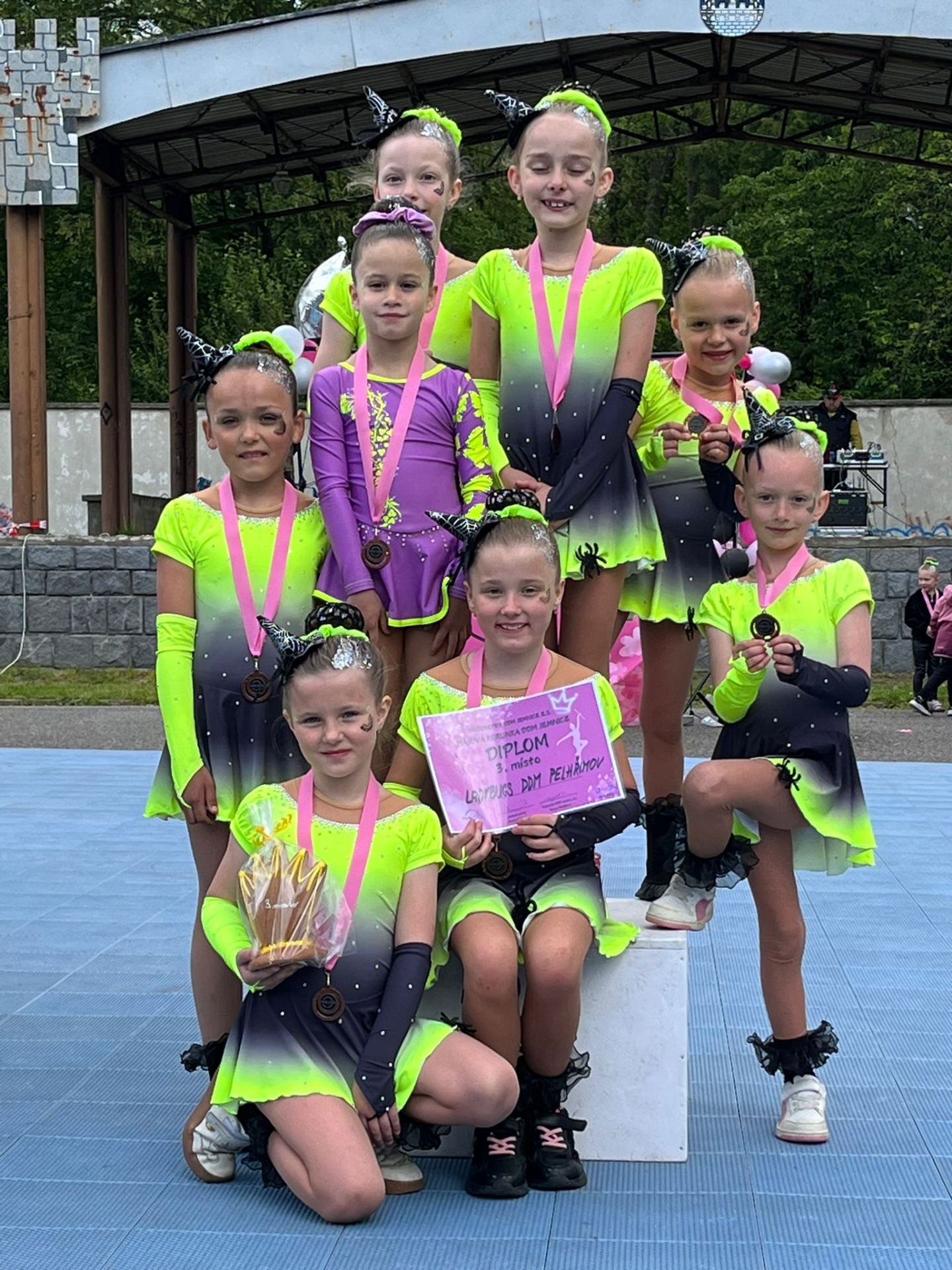Na soutěž poprvé vyrazily také naše nejmenší mažoretky Ladybugs a získaly své první bronzové medaile. Překvapením bylo vystoupení Ladybugs v malé formaci, kde dokonce vystoupaly až na 2. příčku. Pro celý tým to byl nezapomenutelný den plný emocí a zasloužené radosti z úspěchu. Velké poděkování patří všem, kteří se podíleli na organizaci soutěže, bez jejich nasazení, pečlivé přípravy a ochoty by akce neměla tak hladký a profesionální průběh. Stejně tak děkujeme rodičům našich mažoretek, kteří pomáhali s přípravami i zázemím pro naše děvčata. Vaše podpora je pro nás neocenitelná! Soutěž O Pelhřimovský dukát se opět ukázala jako skvělá příležitost pro mladé mažoretky ukázat, co v nich je – a my už se těšíme na další ročník.